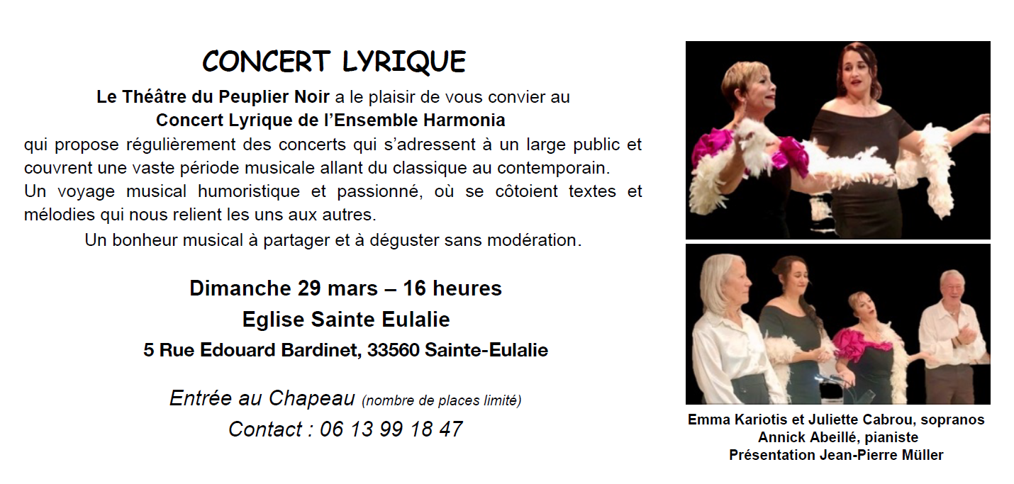 Le Théâtre du Peuplier Noir organise, un Concert Lyrique de l'Ensemble Harmonia