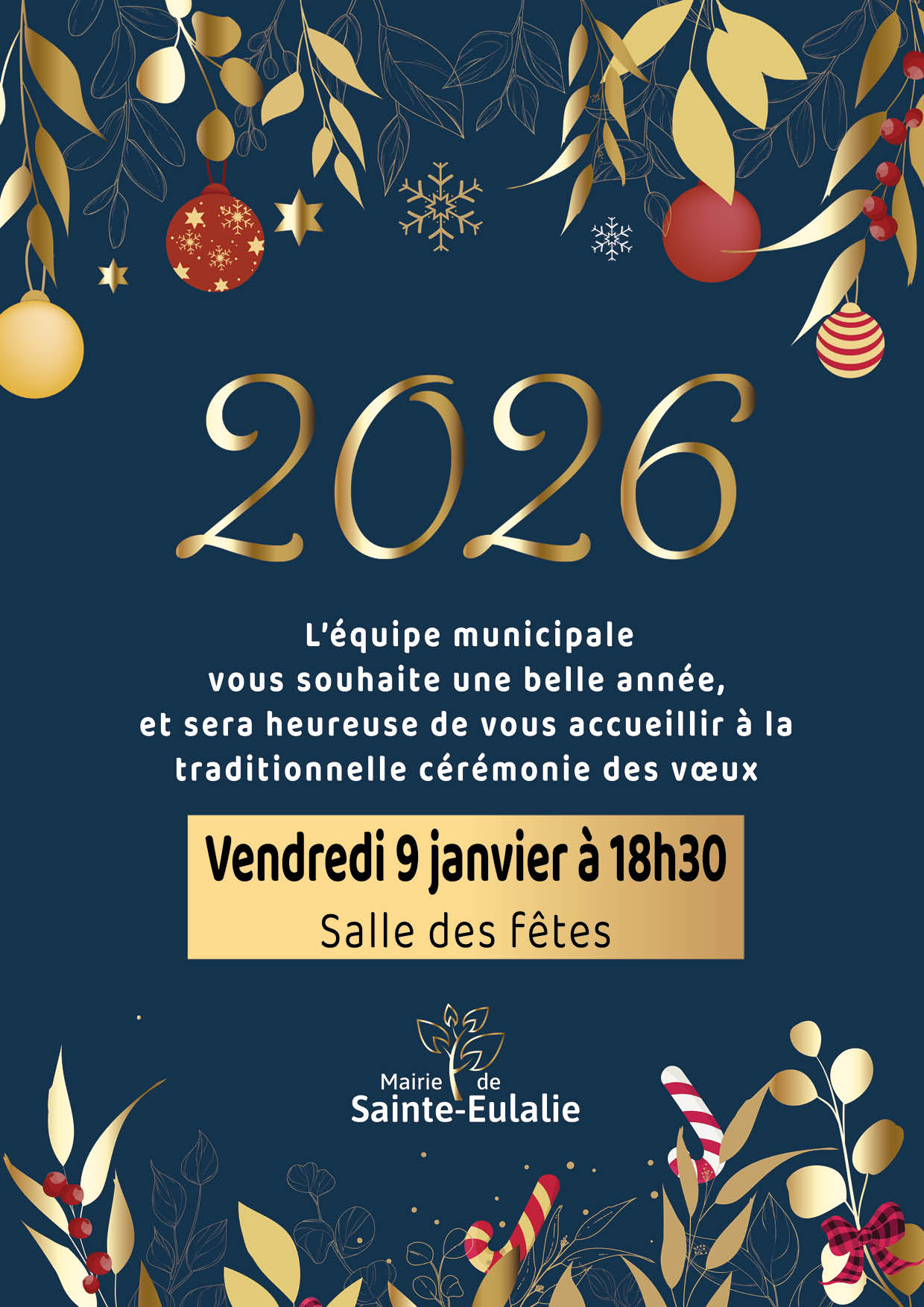 La traditionnelle cérémonie des voeux aura lieu à la salle des fêtes le vendredi 9 janvier à 18h30